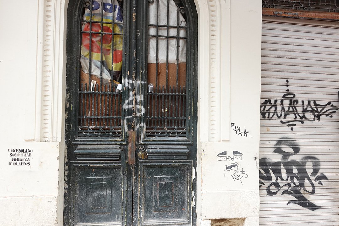 Como resultado de un interés por regular los colores de las casas, a partir de los años sesenta y hasta los años noventa los muros de las casas de La Candelaria se pintan de blanco mientras que otros elementos como los zócalos, las rejas, los balcones y las puertas y ventanas se pintaban de verde. En la muestra tomada de la reja de entrada, se observan varios estratos de color verde que resultan ser los más recientes, mientras que debajo, aparecen estratos con colores muy diversos e incluso algunos que son metálicos con materiales como el cobre o el aluminio. El hecho de que las capas más recientes sean verdes, implica que las políticas de manejo del color que fomentó la Alcaldía hasta los años ochenta, aún permanecen en el imaginario de las personas.