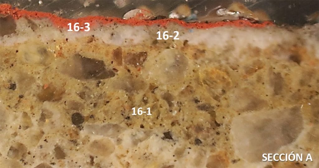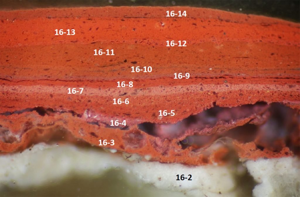 | 16-4 | Capa pictórica sintética roja | 30-50 µm |