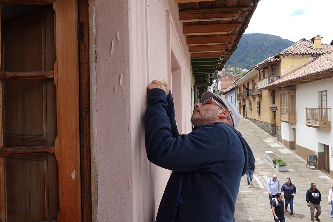 Al ir pintando la fachada de una casa, las capas de pintura se van acumulando unas encima de otras. Las capas o estratos más antiguos van quedando entonces más abajo y están localizados más profundos en el muro. Para poder visualizar estos estratos ocultos, se toma una muestra muy pequeña (del orden de milímetros) que luego se engloba en una resina, se corta y se pule para poder visualizar la sucesión de las capas. A este tipo de análisis se le llama corte estratigráfico. En la casa de los comuneros, hoy en día sede de la Secretaría Distrital de Cultura, Recreación y Deporte, podemos observar la sucesión de capas de pintura de color rojo que han decorado el zócalo de esta casa, conocida como Casa de los Comuneros.